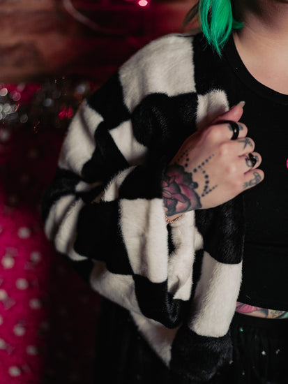 AFTER PARTY ENERGY CHECKERED FAUX FUR COAT