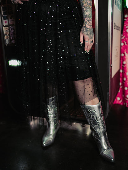 BORN TO SPARKLE MESH MIDI SKIRT