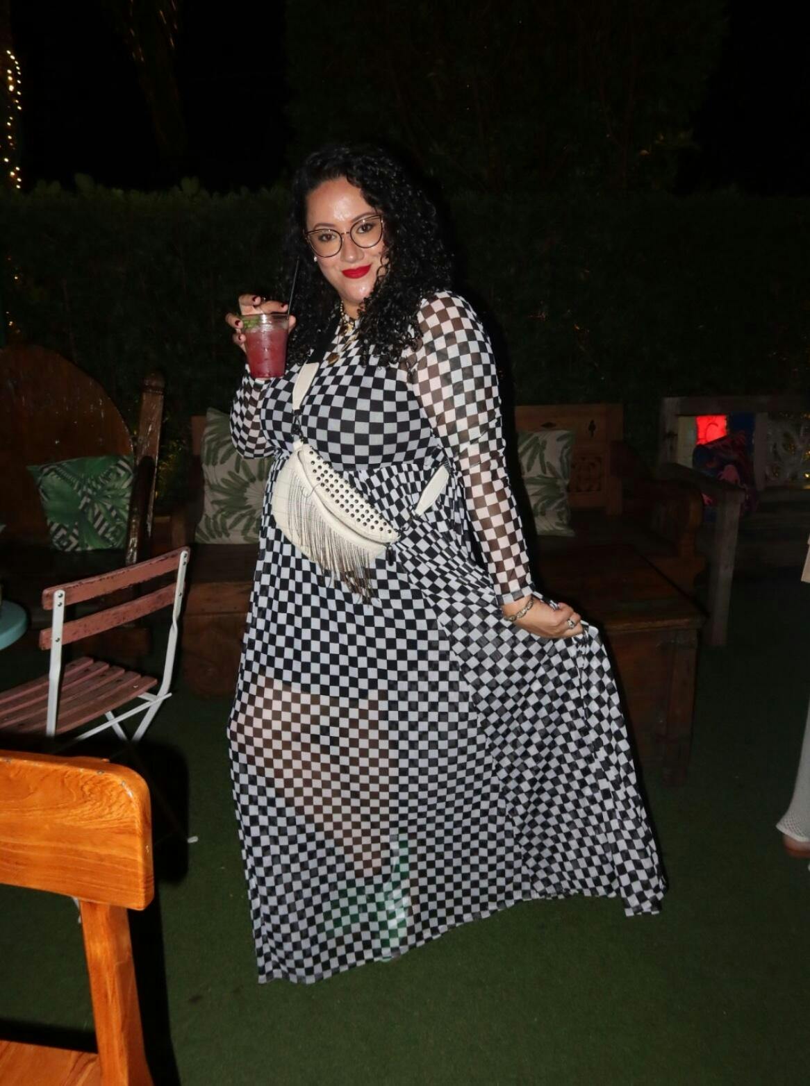 FIERCE FEMALE MESH MAXI DRESS IN CHECKERED PRINT S-3XL