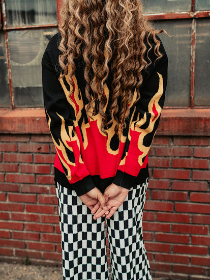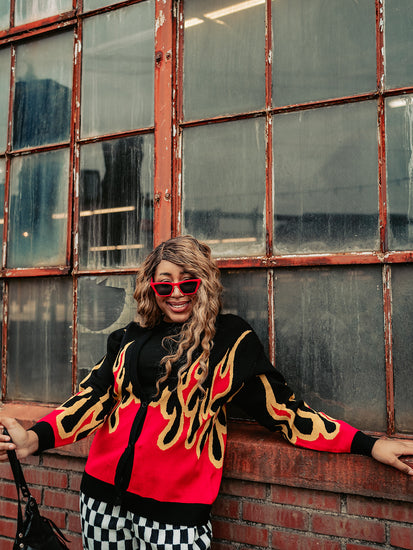 Bold color, cozy vibes, and confidence that can’t be dimmed—the Girl on Fire Knit Cardigan is here to turn up the heat. Featuring a soft knit feel and a bold flame detail that sets it apart, this isn’t your average layering piece. It’s the kind of cardigan that walks in before you do.