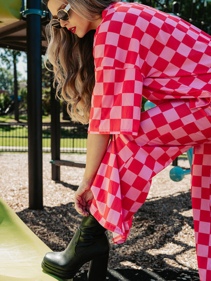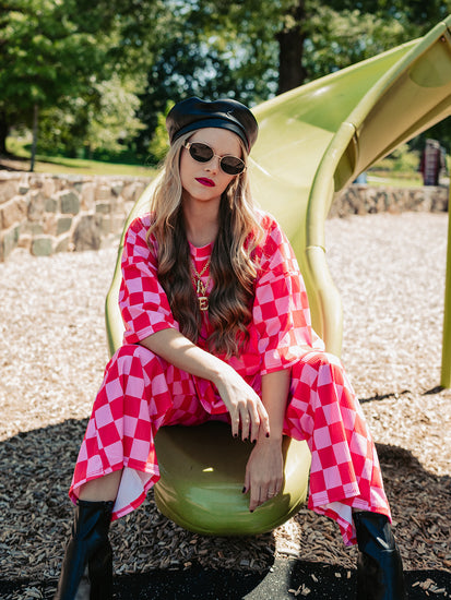 The Pretty in Punk Matching Set takes a red-and-pink checkered clash and turns it into your go-to uniform for fall. An oversized tee meets relaxed bottoms so you can move loud, live bold, and stay comfortable while you do it.
