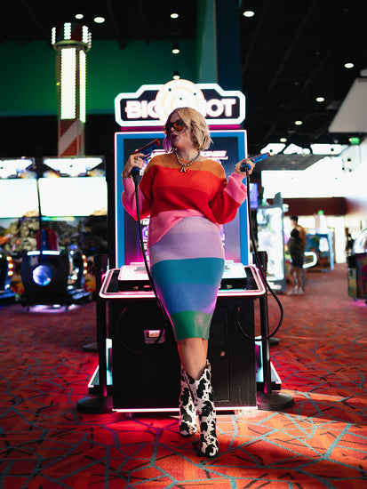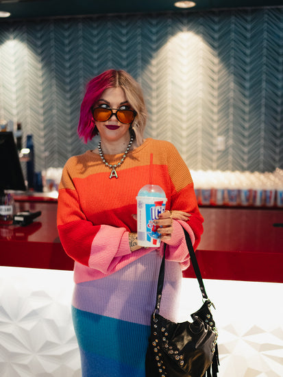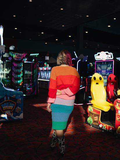 The Rainbow Sorbet Knit Set is a full-on dopamine rush in outfit form. Made from a luxe, medium-weight knit, this matching sweater + skirt duo is cozy, colorful, and straight-up confidence-boosting. The bold, rainbow stripes bring major feel-good vibes, while the oversized sweater and curve-hugging skirt keep it flirty and fun.