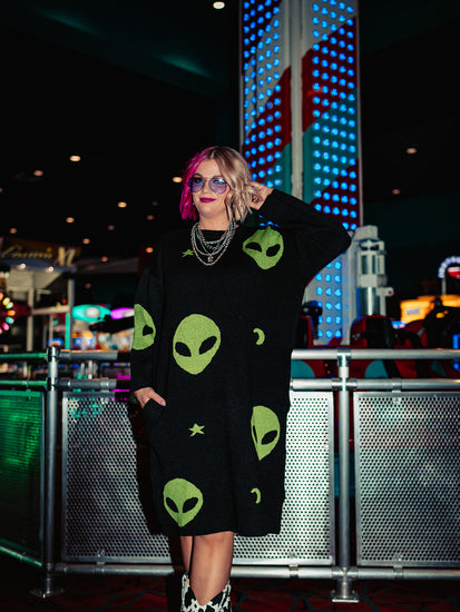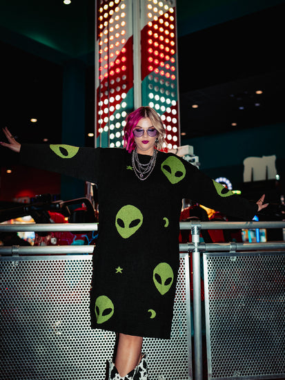 The Stay Weird Alien Sweater Dress is for the girls who never outgrew their emo phase — they just got better style. With its oversized fit, bold alien graphic, and ultra-soft knit, it’s giving “IDGAF but make it fashion.” Equal parts comfy and iconic, it’s the dress you’ll reach for when you want to stand out without even trying.